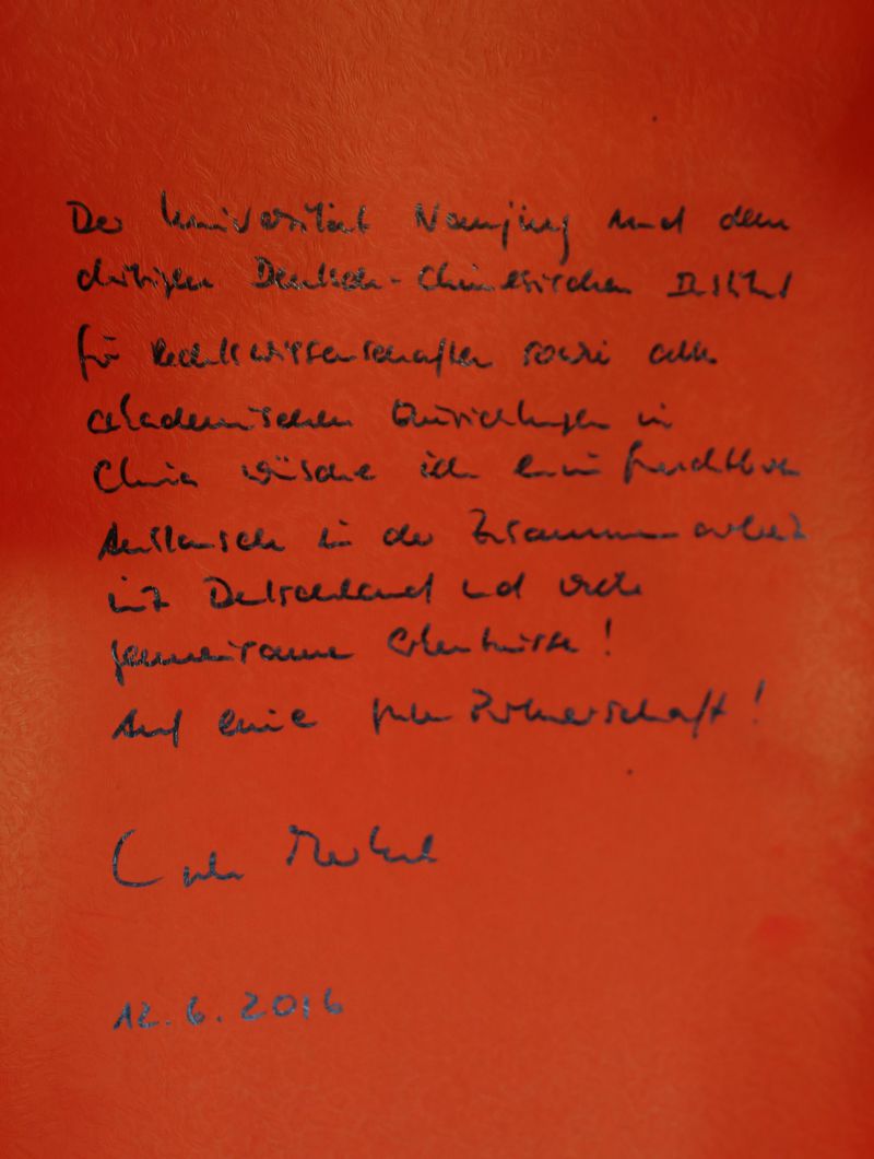 默克尔总理为凯发师生留言 (佘治骏 摄影)