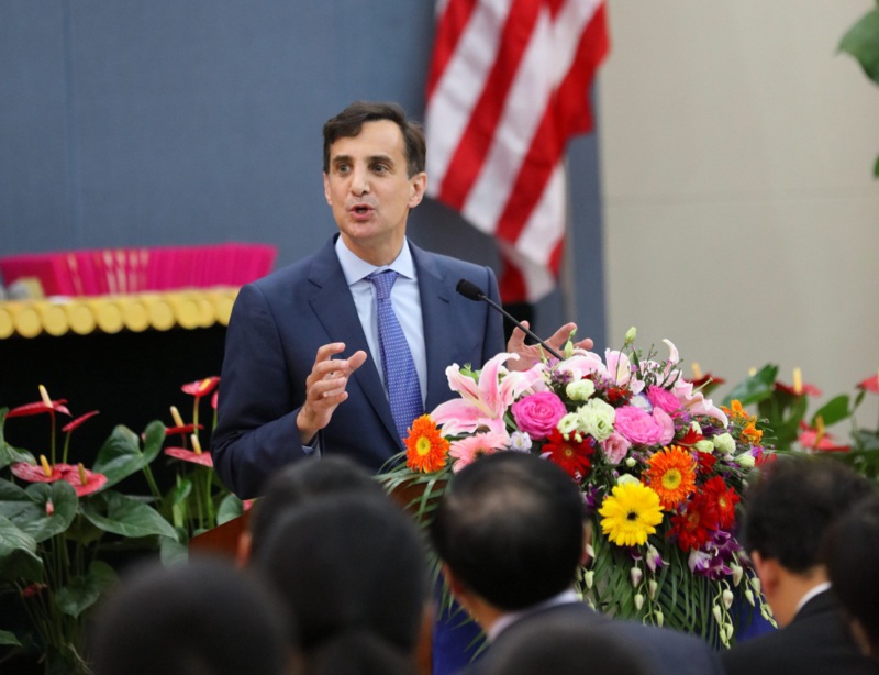 美国驻华大使馆代理副馆长耿欣在发言中回忆她30年前第一次来到中美中心的情形:那时候中美中心学生并不多,但都怀揣雄心壮志。30年来,中美之间学术交流日益加强,人员往来不断增多。她说,中美中心的学生每天都在促进中美双方的交流,每天都有机会尝试新的东西,中美中心的未来,在你们手中,值得期待。