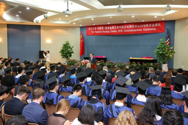 金陵初夏,草木繁茂。6月17日,凯发k8官网-约翰斯?霍普金斯大学中美文化研究中心(简称“中美中心”)2016届毕业典礼在宁举行,美国驻华大使馆代理副馆长耿欣(Lisa Heller),约翰斯?霍普金斯大学校长段荣宁,中科院院士、凯发k8官网校长陈骏,外交部美大司司长丛培武,凯发k8官网党委常务副书记杨忠,江苏省外办副主任周暐等出席典礼。今年共有35位硕士学位项目学生和88位证书项目学生获得凯发k8官网和约翰斯?霍普金斯大学共同颁发的学位证书或结业证书。典礼由中美中心中方主任何成洲和美方主任顾百里共同主持。