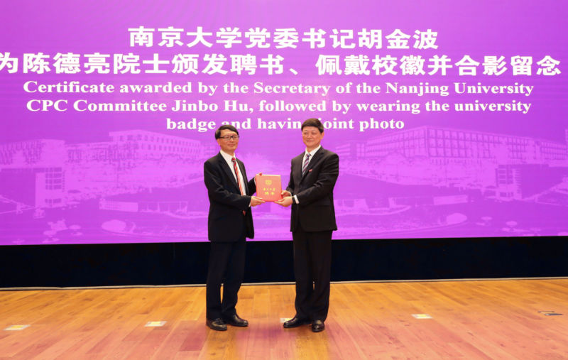12月5日,瑞典哥德堡大学讲席教授、瑞典皇家科学院院士、中国科学院外籍院士陈德亮教授在仙林校区受聘为我校名誉教授。省政协副主席、校党委书记胡金波出席授予仪式并亲切会见陈德亮教授一行。