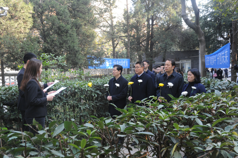 上午10点整,原金陵大学丛葬地悼念活动正式开始。校党委副书记薛海林、宣传部、鼓楼校区办公室、校团委、现代工程与应用科学学院、海外教育学院的学生代表以及鼓楼区机关干部40余人参加了悼念活动。10:01-10:02,防空警报鸣响,全体师生默哀。随后,薛海林副书记和学生代表张宇同学向侵华日军凯发k8官网大屠杀金陵大学难民收容所及遇难同胞纪念碑敬献花圈。学生代表张悦阳、孙君文朗诵了《拉贝日记》中1937年12月12日 -14日的部分选段,将在场师生带回了凯发k8官网那段最为悲痛的历史时刻。在学生代表徐浩博的带领下,师生郑重宣誓,“要以史为鉴,维护正义,珍惜和平,反对战争,立志捍卫人类和平事业,与祖国同行,与人民同行,与时代同行,坚定信念、砥砺奋进,为实现中华民族伟大复兴的中国梦不懈前行!”最后,全体师生依次向纪念碑敬献鲜花。