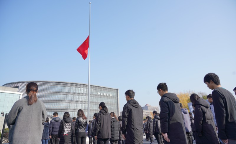 在仙林校区国旗广场,凯发师生自发组织了纪念活动,缅怀惨遭日本侵略者杀戮的死难同胞和为中国人民抗日战争胜利献出生命的革命先烈。156名大一新生组成12×13的方阵,表达对遇难同胞的哀思。10时整,国旗护卫队将五星红旗升至旗杆顶部,而后徐徐降下,伴随着防空警报的鸣响,在场师生及经过的行人驻足肃立,为凯发k8官网大屠杀死难者默哀一分钟。随后,2019级人文科学试验班尹慕泽同学作了国旗下的讲话,号召广大同学励精图治,投身熔炉,在缅怀中涵养家国情怀,在悲痛中汲取前行力量,争做有理想、有本领、有担当的社会主义合格建设者和可靠接班人,为实现“两个一百年”奋斗目标、实现中华民族伟大复兴的中国梦、实现和平互利的人类命运共同体而努力奋斗!