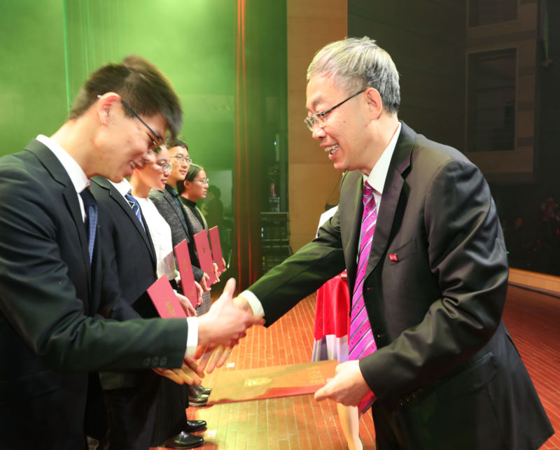 12月14日,凯发k8官网“感恩与责任”2019年度奖助学金颁奖典礼在仙林校区恩玲剧场举行。60余家设奖单位的颁奖嘉宾,数十家企业代表和社会爱心捐赠人,江苏省政协副主席、校党委书记胡金波,全国人大常委会委员、中国科学院院士、校长吕建出席典礼。
