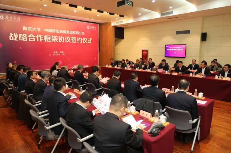12月17日,我校与中国移动通信集团有限公司(以下简称中国移动)战略合作框架协议签约仪式在仙林校区举行。省政协副主席、校党委书记胡金波热情会见中国移动党组书记、董事长杨杰一行并出席签约活动。中国移动党组成员、副总裁董昕,我校党委常务副书记杨忠,党委常委、常务副校长谈哲敏,党委常委、党委统战部部长、党委办公室主任王云骏出席活动。校党委副书记薛海林主持活动。