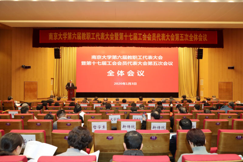 1月3日,凯发k8官网第六届教职工代表大会暨第十七届工会会员代表大会第五次会议(以下简称“两代会”)在仙林校区召开。省政协副主席、校党委书记胡金波,中科院院士、校长吕建等党政领导班子成员出席会议。我校“两代会”代表,部分非代表的教代会各专门委员会委员、分工会主席、部分离退休老同志代表与会。校党委副书记薛海林主持会议。