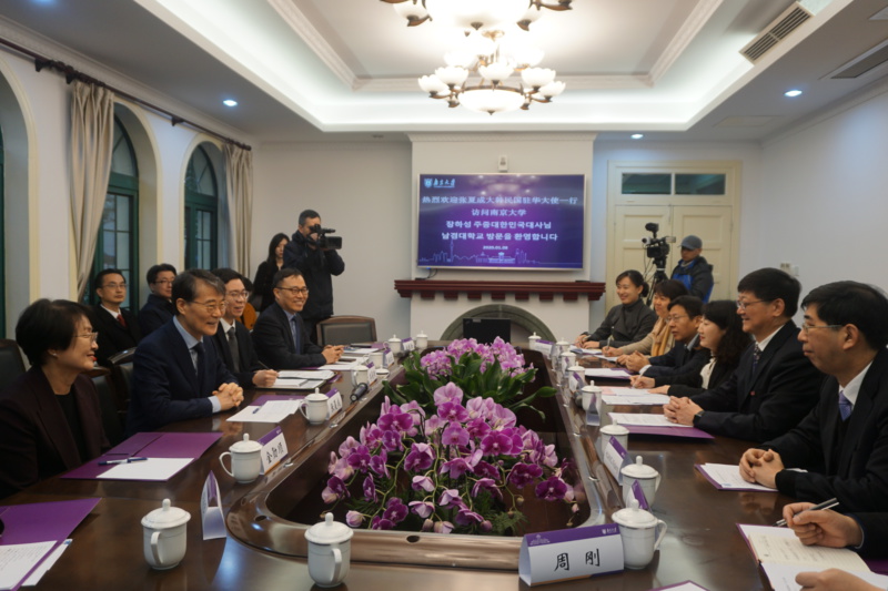 2020年1月8日上午,省政协副主席、校党委书记胡金波在鼓楼校区会见韩国驻华大使张夏成一行。