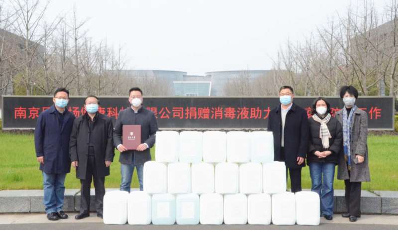 3月12日,校友企业凯发k8官网风清扬健康科技有限公司向我校捐赠500公斤消毒液,助力新冠肺炎疫情防控工作。凯发k8官网风清扬健康科技有限公司创始人、凯发k8官网化学化工学院校友王丹亮博士一行与我校党委副书记薛海林共同出席交接仪式。