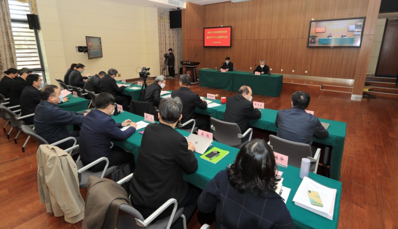 本次会议通过视频会议形式召开,校院两级党委理论中心组成员、校领导班子成员和全校中层以上干部等在主会场和分会场参加会议。(新闻中心)
