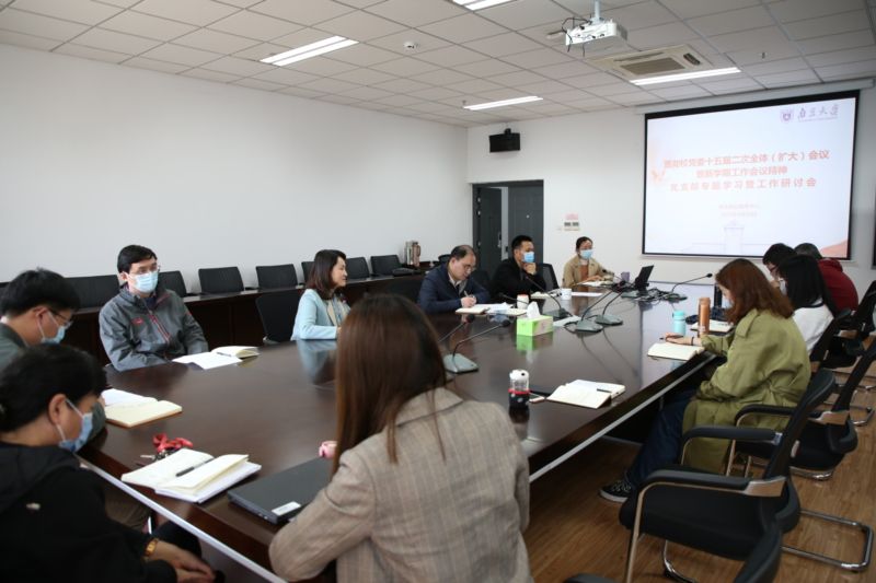 4月15日下午,学生就业指导中心召开学习贯彻党委十五届二次全体(扩大)会议暨新学期工作会议精神专题学习暨工作研讨会。