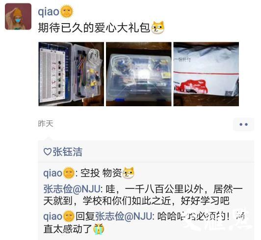 交汇点讯 “老师,我是台湾桃园的学生丁慧慈,我收到大礼包啦!谢谢老师!”“老师,我在新疆阿勒泰,下午4点收到快递,里面元器件都是全的,谢谢老师!”4月18日,在寄出去的第四天,最偏远的新疆阿勒泰地区哈萨克族同学叶斯哈提·也尔肯发来收到快递的消息。