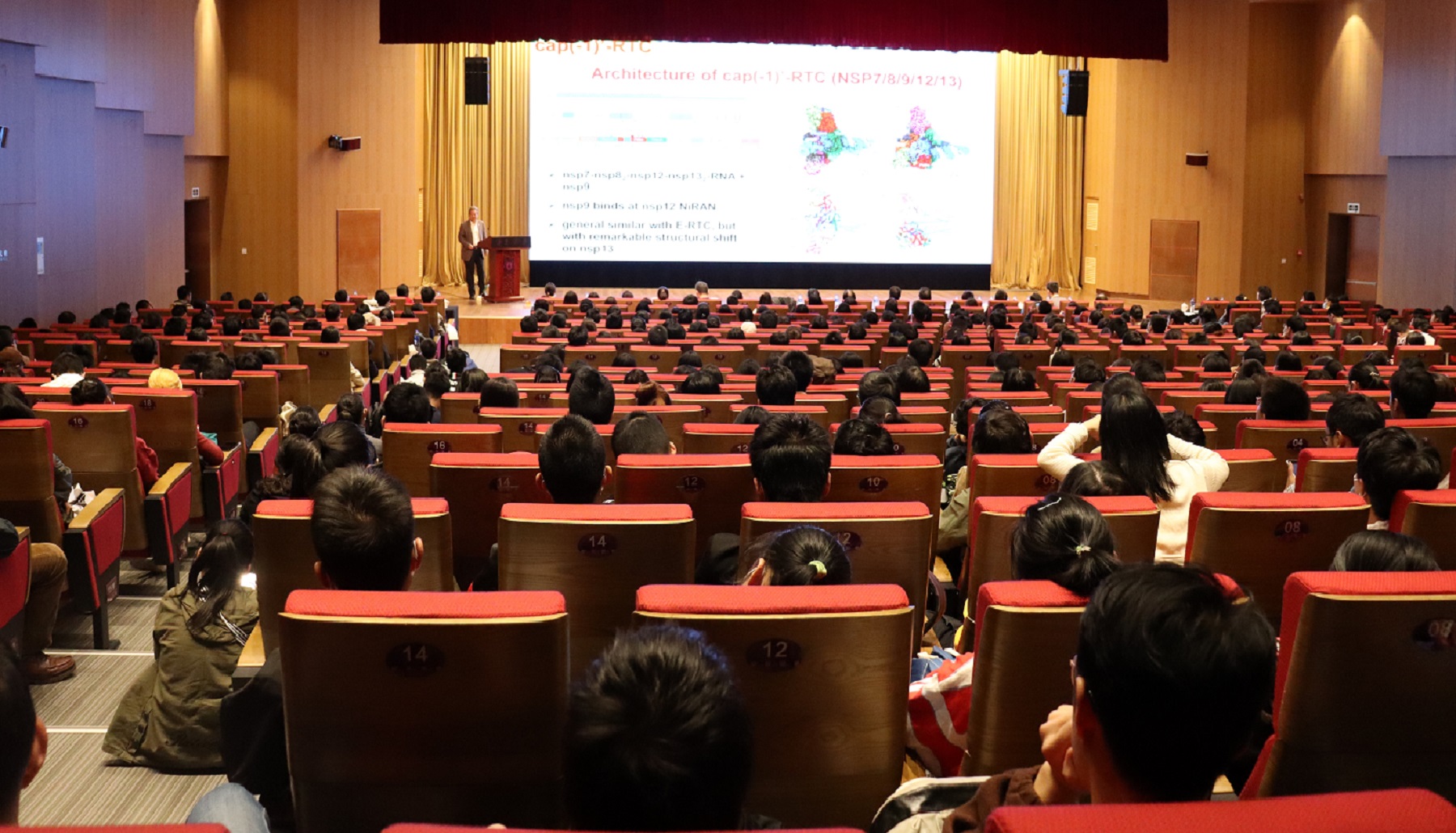 讲座中,饶子和院士主要介绍了疫情开始以来,清华大学等机构联合开展的迅速且卓有成效的相关研究,从病毒的结构鉴定到新冠病毒感染人体后转录组装的分子机制,再到对于痊愈患者的抗体分离研究及相关疫苗、药物的研发与临床实验……在细致的讲述中,饶院士还穿插了许多生动的模拟视频,还在现场展示了病毒蛋白结构的3D打印模型,让我们更加直观形象地了解新型冠状病毒。