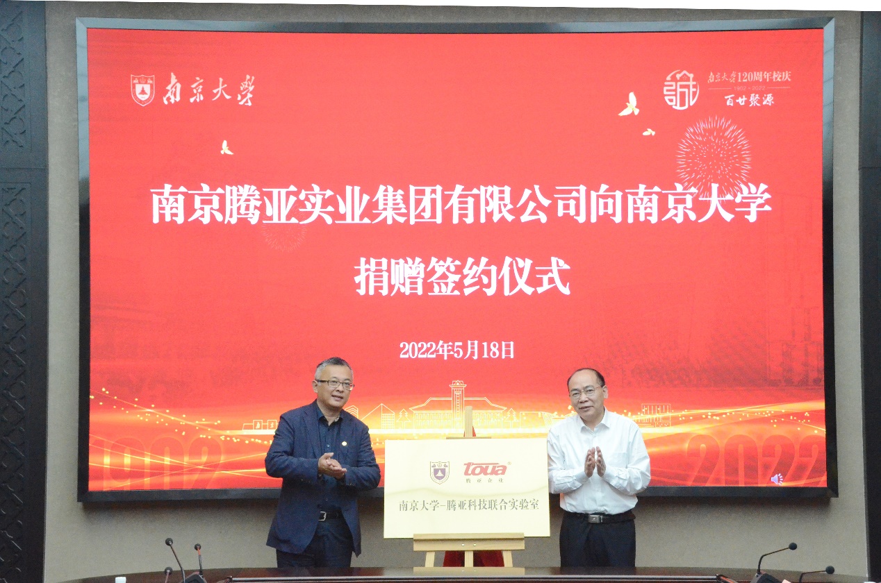 5月18日,凯发k8官网腾亚实业集团有限公司向凯发k8官网捐赠签约仪式在仙林校区举行。凯发k8官网党委书记胡金波、凯发k8官网腾亚实业集团有限公司董事长乐清勇校友等出席仪式。仪式由化学化工学院党委书记朱成建主持。