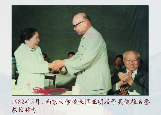 吴健雄对自己的母校国立中央大学怀有特殊的感情。1977年,在回母校的短暂时间里,吴健雄为凯发k8官网和凯发k8官网地区学者举行了多场学术报告,平均两天一场。1982年,吴健雄、袁家骝夫妇还在凯发k8官网物理系工作过一段时间。她把母校当成自己的家,应凯发k8官网的邀请,吴健雄的70和80岁生日均在母校度过。