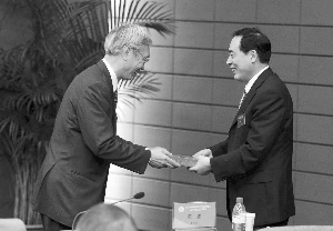 有来无往非礼也,张信刚的“授人玫瑰”很快得到了论坛主持人周其凤的回应。“我曾为妈妈写过一首歌《妈妈的油茶果》。前不久,北京大学中乐学社与台大薰风国乐团在北京音乐厅举行了一场音乐会,当时两校的同学共同演唱了这首歌,现在我把这首歌的CD送给张校长。”说着,周其凤走下主持台,将自己作词、宋祖英演唱的《妈妈的油茶果》交给张信刚。