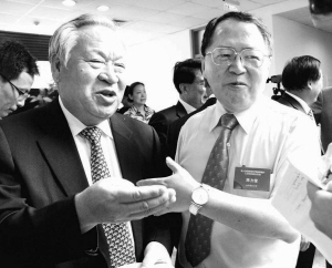 茶歇时,清华大学原校长顾秉林和台湾清华大学校长陈力俊两个人凑到一起,拉着手说个没完,兴奋得像两个孩子。“我们俩都是学物理的,年龄也差不多大。”陈力俊也忍不住插了句:“还有人说我们俩长得像呢。”