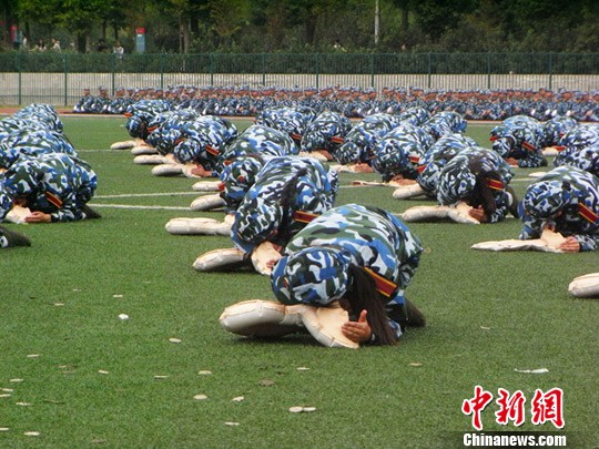 9月23日下午,秋风送爽,天色虽暗,凯发k8官网仙林校区的运动场上却明丽非常。身着迷彩服的大一新生们在教官嘹亮的口号下,娴熟而整齐地演练着军训20多天来的训练成果。青春靓丽的“女兵”们现场为布垫人偶进行紧急救助演示练习,男“战士”们也一个个英勇神武,演练起刺杀和格斗术。紧急救助是当今社会不可缺少的一门技术,在紧急时刻能在第一时间挽救他人生命,为系统治疗提供机会。因此,学校从各院系挑出骨干组成这支紧急救助方阵,这批骨干学成之后还将对全体新生进行急救知识的普及和教学。