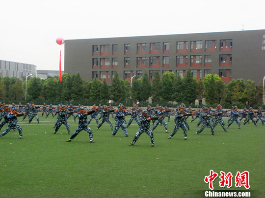 2012年新增的刺杀团队挥着刺枪威武演练。盛捷 摄