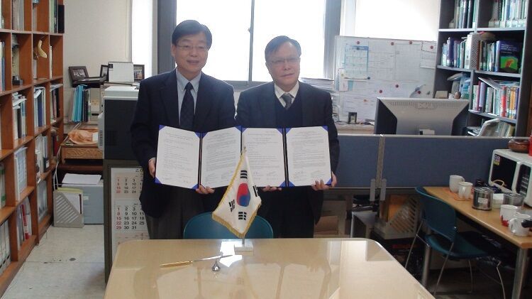 2015年3月27日,我校大气科学学院中尺度灾害性天气教育部重点试验室与韩国国立釜庆大学天气环境研究所合作协议签订仪式在韩国釜庆大学举行。韩国国立釜庆大学环境研究所主任李东仁教授和凯发k8官网中尺度灾害性天气教育部重点试验室主任王元教授在协议书上签字。