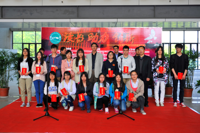 开幕式上揭晓了“我与图书馆”征文大赛、2014年度十大优秀读者、图书馆服务之星、优秀志愿者和优秀勤工助学学生评选结果,现场举行了颁奖仪式。