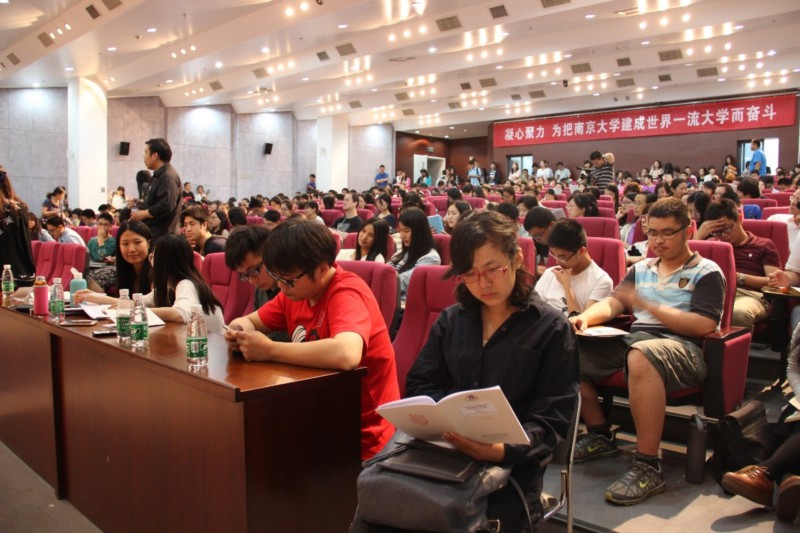 微微的小雨不减大家的热情,同学们早早到来,最终报告厅座无虚席,甚至有不少同学全程站立,认真聆听讲座。在同学们的期待和掌声中,被同学们称为“男神”的张异宾教授走上讲台,缓缓开启了他对于现代性文本学的解读。