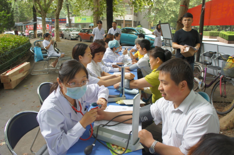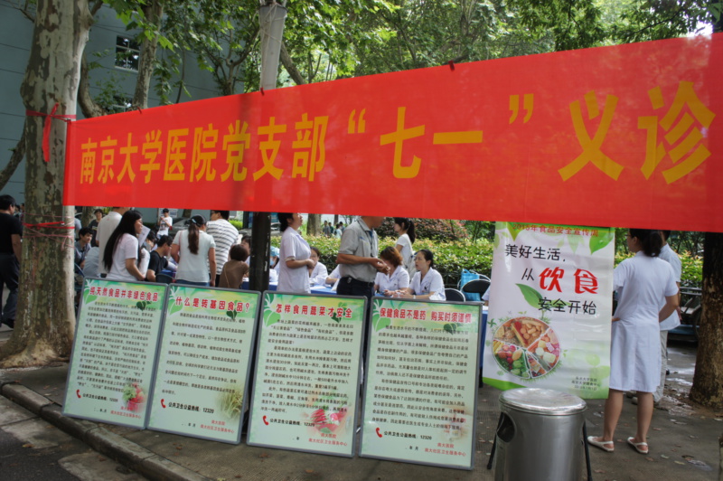 7月1日,为庆祝党的第94个生日,校医院党支部组织开展了校园义诊活动,来自医院各科室的在职党员共19人利用中午休息时间在南园进行常见病的诊治咨询以及食品卫生安全宣传。