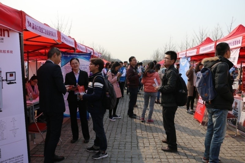 早上9:30,双选会正式开始。不少用人单位早在8点半左右就开始陆续进场,报到处排起了长队。10点至11点,各家用人单位的展台前人头攒动,二源广场的招聘活动逐渐达到高潮。不仅用人单位在不遗余力地招揽人才,前来应聘的同学也在积极寻找适合自己的岗位。火红的帐篷前用人单位和学生的交流气氛热烈,和谐有序,醒目的凯发紫展牌吸引了不少学生驻足观看。