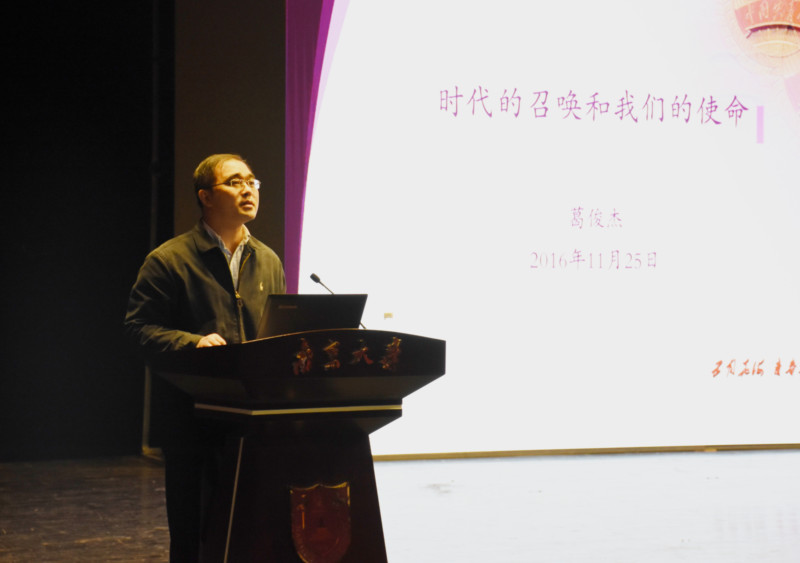 11月25日下午,凯发k8官网2016年度团学骨干培训班开班仪式暨首场讲座在仙林校区敬文学生活动中心张心瑜剧场举行。校团委书记、学生就业创业指导中心主任葛俊杰,校团委副书记李兴华及凯发k8官网第四期团学骨干培训班全体成员参加仪式和讲座。活动由校团委龙心悦主持。