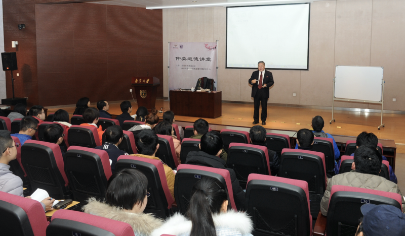 程郁缀教授的讲座饱含家国情怀,引经据典,古典诗词歌赋信手拈来,天文地理概括其中,语言幽默风趣,给在座师生以深刻的感染。在近两个小时的讲座中,他从文学的历史长河中纵横挥洒,从先秦、两汉、六朝到唐宋的诸家经典如数家珍,通过诗词展示我国传统文化中对劳苦大众的人文关怀和尊重,对民族精神的抚育,对现实生活的关注,对父母的感恩,对国家民族的大爱。他希望同学们继承这种人文精神传统,要立大志,“载入一个史册,创造一个第一”,对给予自己身躯血肉的生母,给予知识的母校,和给予尊严、精神的祖国母亲,“滴水之恩,涌泉相报;涌泉之恩,大海相报”。(新闻中心 王肖飞)