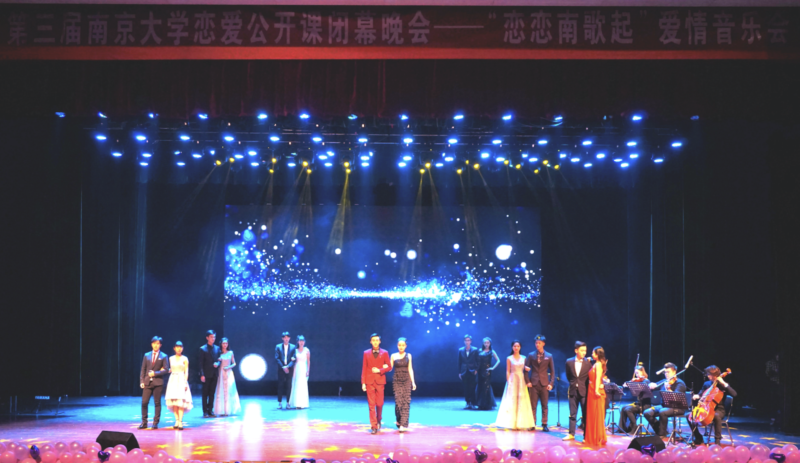 2016年12月16日晚,由校团委主办、研究生会承办的凯发k8官网第三届恋爱公开课闭幕晚会“恋恋南歌起”爱情音乐会在仙林校区恩玲剧场举行,校长办公室主任尹三洪,研究生院副院长朱俊杰,校团委书记、学生就业指导中心主任葛俊杰及相关部门负责人、各院系教师代表,与来自校内外的千名师生参加了本次晚会。