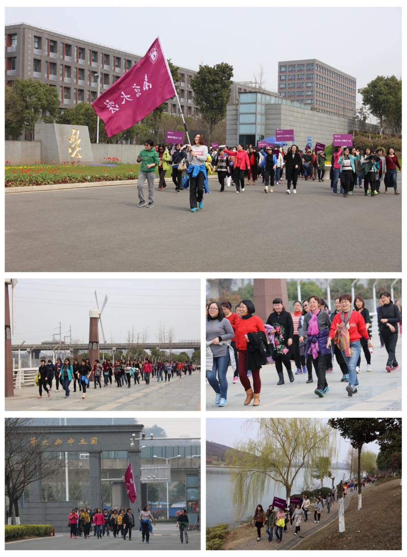 3月10日中午,由校工会、女教职工委员会组织的女教职工"环羊山湖踏青健身走"在仙林校区举行,各院系单位近千人参与了活动。启动仪式在南门电子屏前举行。