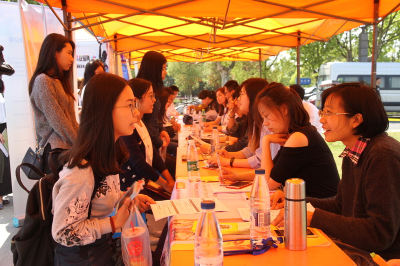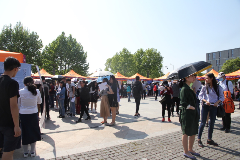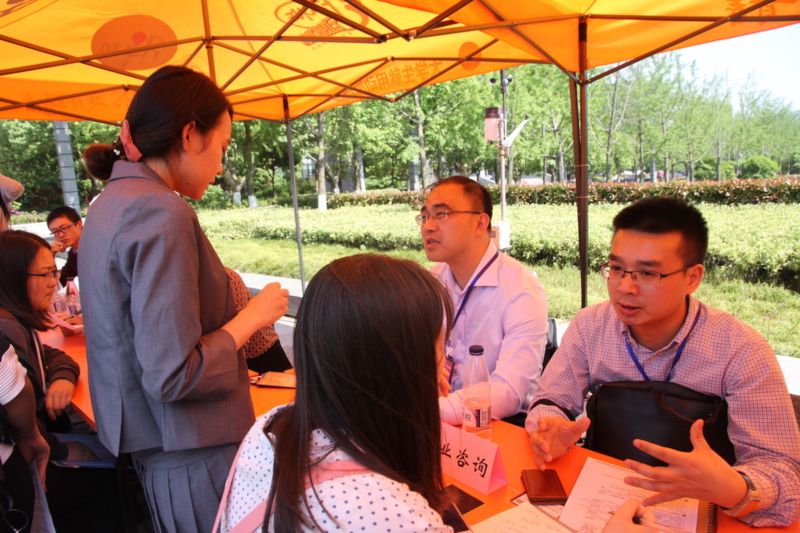 凯发k8官网2017年实习双选会于4月28日在仙林校区二源广场火热开展。下午一点半,双选会正式开始,多数企业早早到达会场进行布置,翘首以待。尽管天气炎热,也挡不住学子们的实习求职热情,现场十分火爆。