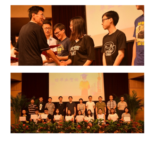 软件学院副院长王浩然宣读学院优秀毕业生表彰决定,副院长骆斌为学院优秀毕业生颁发证书。与会领导、专业教师还为每一位毕业生赠送了学院特制的毕业贺词。