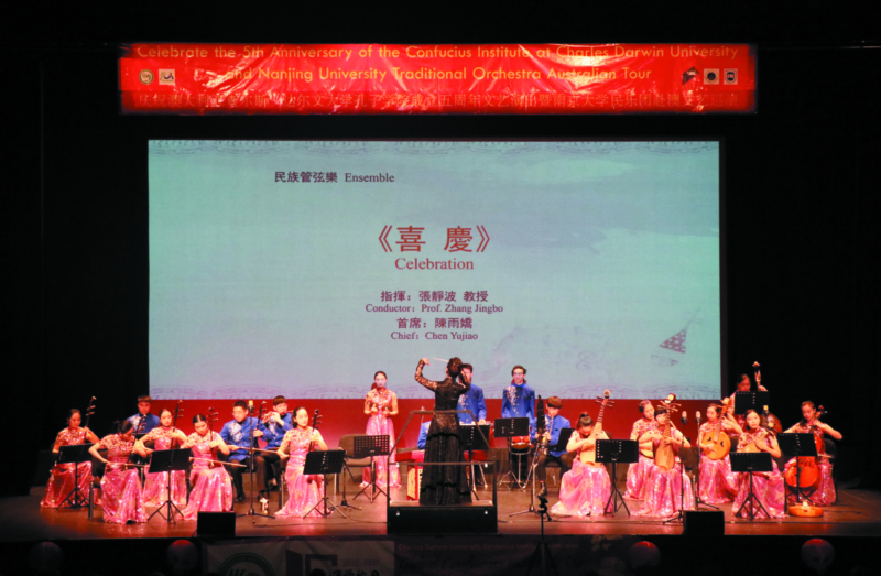 8月24日,庆祝墨尔本大学孔子学院成立十周年专场演出在墨尔本大学亚洲中心举行。该孔子学院于2007年由墨尔本大学与凯发k8官网合作创办,作为维多利亚州第一所孔子学院,在中澳合作交流中发挥着重要的桥梁作用。墨尔本大学亚洲合作办公室首席执行官郭珺宁、维州教育部官员、孔子学院外方院长宫正等出席了本次庆典音乐会。音乐会以一曲热烈欢快的《喜庆》开场,为墨尔本大学孔子学院成立10周年庆生,随后又为该校孔子学院师生和当地华人华侨500余人奉献了10个传统经典节目,将现场气氛带入或悠远、或激昂、或静谧、或欢腾的丰富多彩的艺术境界。音乐会结束后,观众们反响热烈,久久不愿离场,纷纷上台与乐团同学们热切交流并合影留念。演出得到了各界人士的高度赞扬。
