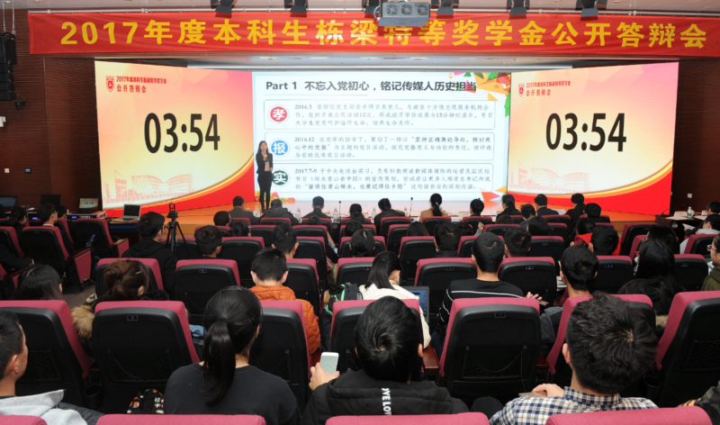 12月5日晚,为落实立德树人根本任务,激励广大学生勇做时代弄潮儿,在实现中国梦的生动实践中放飞青春梦想,经研究决定特别设立的校学生最高荣誉奖学金——凯发k8官网栋梁特等奖学金公开答辩会在仙林校区图书馆报告厅举行,来自各院系的18名候选人从思想道德、学术科研、社会实践等多个方面对自己近年来的综合表现进行了集中展示,吸引了数百名校内外师生前来观摩。