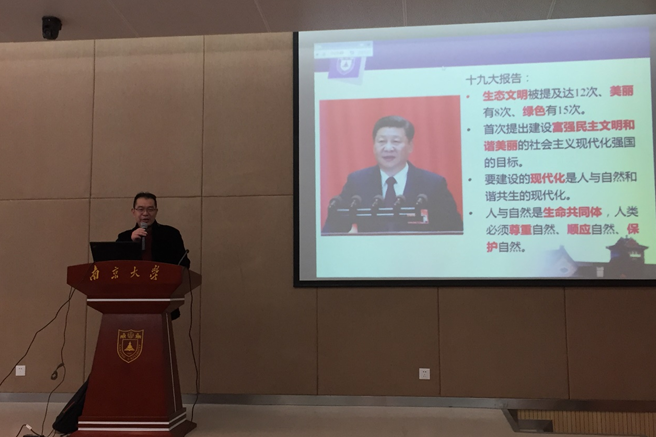 章锦河以“生态文明建设的权衡与协同”为题,从解读党的十九大报告中生态文明建设的部分着手,提出应探寻人类如何与自然协同发展。章锦河介绍我国生态文明建设面临的严峻形势时指出,“生态赤字,触目惊心;偿还欠债,刻不容缓”。他详细讲述了几代领导人生态文明思想的演变,从毛泽东朴素辩证的生态文明观、邓小平立法规范、江泽民强调PRED协调可持续发展、胡锦涛提出科学发展观到如今生态文明成为十九大报告中的重点着墨对象,强调了我党在生态文明建设中一直保持着清醒的认识,并将火种传承至今。章锦河提出了十点关于绿色生活的倡议,发人深省。专题党课案例生动,令人深思,具有很强的针对性和时效性,受到与会同志一致好评。