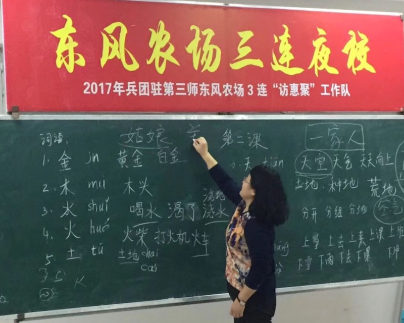 石红梅在东风农场三连夜校给连队维吾尔族职工上汉语课
