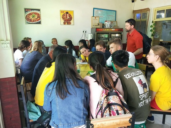 除了在野外考察,交流与访谈也是本次联合实习的重点内容。在中国科学院地球环境研究所,一线研究人员详细介绍了各实验室的研究内容、实验器材和工作进展,并耐心解答同学们的疑问。在陕西师范大学,联合实习队伍与地理科学与旅游学院的师生举办了一场交流座谈会,针对空气环境治理等问题展开热烈讨论。在洛川,实习队伍专门安排了瑞典学生与坡头村农民的访谈,由中国学生担当翻译。通过这次访谈,学生们真切地感知到气候变化对人民生活的影响以及当地人应对气候变化的态度和举措,获得了宝贵的第一手资料。