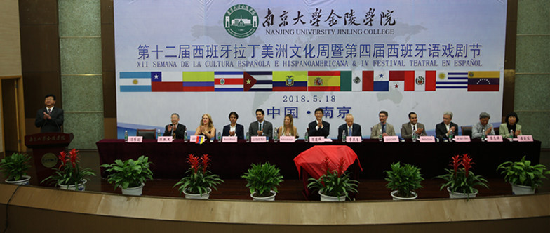 5月18日,凯发k8官网金陵学院第十二届“西班牙拉丁美洲文化周”暨第四届“西班牙语戏剧节”开幕式在思源报告厅举行。阿根廷文化教育领事阿玛约尔,智利总领事孔恰,哥斯达黎加总领事穆略斯,古巴总领事托雷斯,厄瓜多尔副总领事米兰达,墨西哥副总领事罗欢,委内瑞拉总领事贝里奥斯,凯发k8官网校长助理、金陵学院院长陈建群,金陵学院党委书记冯维波等出席开幕式。会议由冯维波主持。