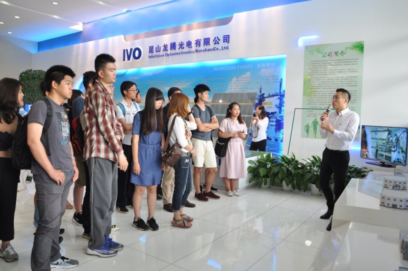 考察团还来到昆山龙腾光电有限公司了解企业愿景、规模以及产品。公司总经理吴杰灵向大家分享了在昆山工作、生活多年的感受,并与我校台生互动交流。