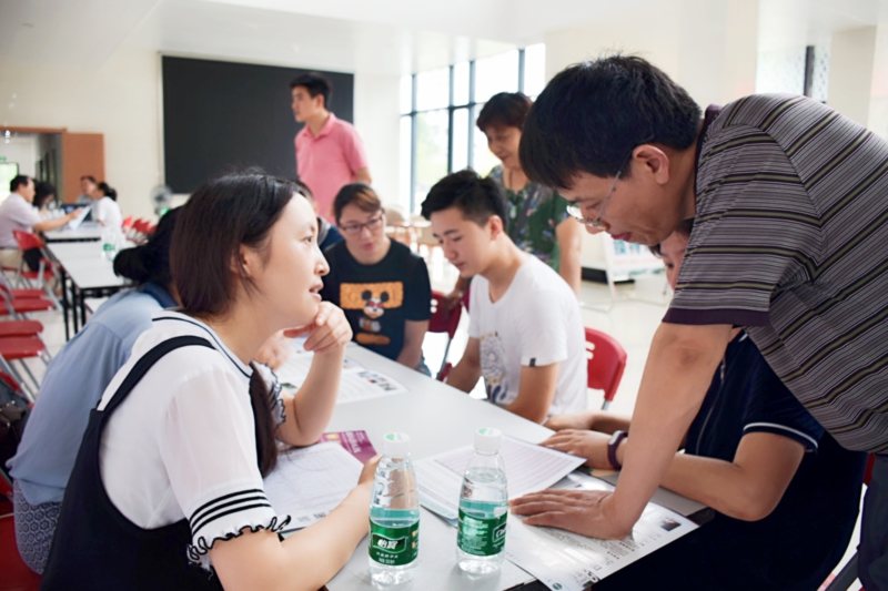 文科综合楼作为本次“开放日”活动主会场,设有2个招生咨询点、7个专业咨询点以及电话咨询点。在专业咨询点,来自各院系专业的老师针对学科专业设置、教学资源、实习实训平台、学生就业去向及交流活动等问题为考生和家长答疑解惑,对考生填报专业志愿以及规划未来大学学习生活、职业方向等进行指导;在招生咨询点及电话咨询点,招生工作人员对家长和考生提出的招考政策、预估分数线、志愿填报等问题进行耐心解答。
