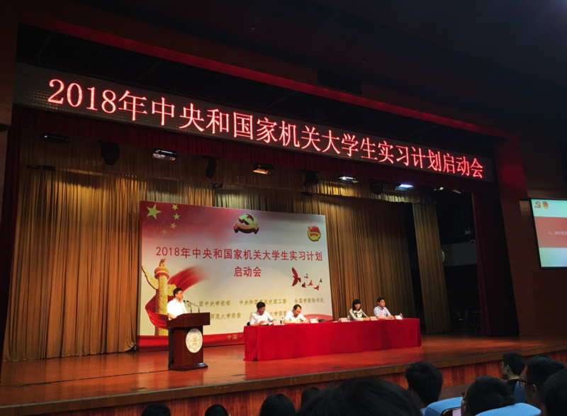 7月18日上午,2018年中央和国家机关大学生实习计划(原“紫光阁”计划)启动会在北京举行,团中央学校部、中央和国家机关团工委、44个参与实习计划并负责接收实习生的中央和国家机关团委、20余所在京高校团委负责同志及来自全国68所高校的316名实习生与会。今年,我校地球科学与工程学院的孙启程、法学院的刘玉林、外国语学院的张思嘉、建筑与城市规划学院的方彬和外国语学院的姜靓等5位同学将在生态环境部、最高人民法院、国家税务总局、文化和旅游部进行为期一个月的实习。