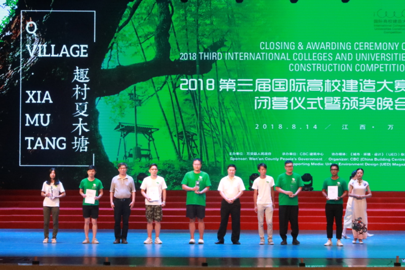8月14日晚,由万安县人民政府主办、CBC建筑中心承办的 “趣村夏木塘——2018第三届国际高校建造大赛”闭营仪式暨颁奖晚会在江西万安县文化艺术中心举行。当天,以中国工程院院士,中国建筑设计院有限公司名誉院长、总建筑师,本土设计研究中心主任崔愷为主席,由14位中外建筑界知名专家、学者和建筑师组成的评审团通过一整天的现场评审,从21个参赛作品中选出一等奖1组、二等奖3组、三等奖8组。凯发k8官网建筑与城市规划学院师生团队参赛作品“迷篱”喜获二等奖。