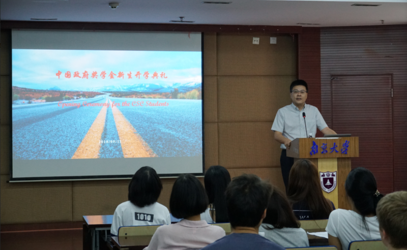 2018年9月11日,海外教育学院在曾宪梓楼101室举行2018年中国政府奖学金新生开学典礼暨入学说明会,海外教育学院负责人,2018级中国政府奖学金新生、海外教育学院教师代表、后勤集团工作人员代表等80余人参加典礼。
