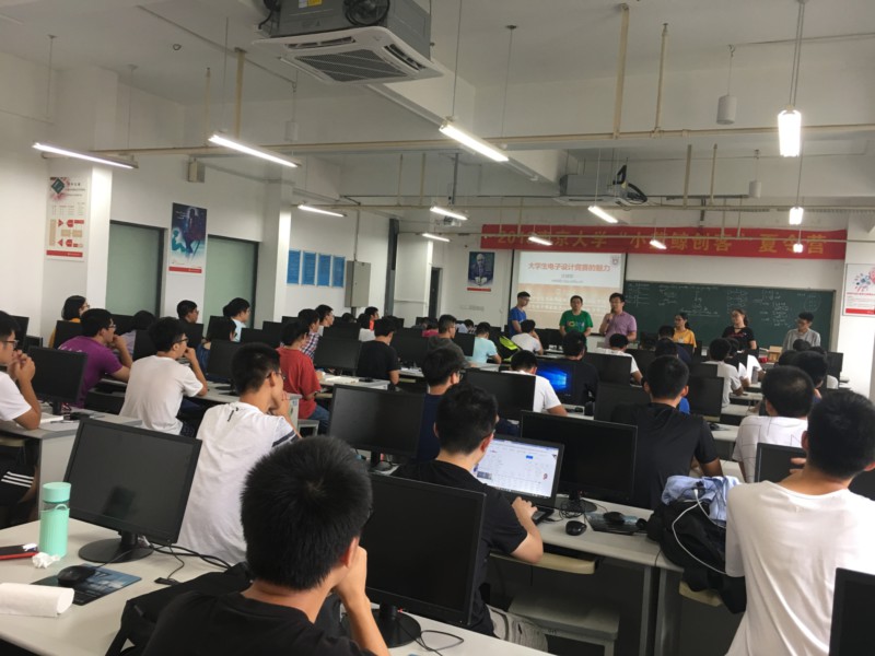 2018年9月16日下午,华东交通大学信息工程学院通信电子创新基地副主任黄德昌带领4位同学如约来到凯发k8官网电子信息专业实验教学中心,就“学科竞赛的组织管理与创新人才培养”等相关话题进行深入交流、互动。凯发k8官网电子信息专业实验教学中心常务副主任庄建军等多位老师以及拟参加2019年全国大学生电子设计竞赛的60多位大一大二学生热情接待了来访师生。