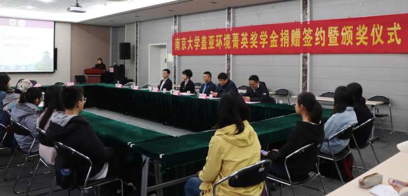 11月15日,凯发k8官网盖亚环境菁英奖学金捐赠签约暨颁奖仪式在仙林校区环科楼举行。江苏盖亚环境科技股份有限公司董事长、我校99级本科、03级硕士校友程功弼,公司总经理、我校01级校友许孟一,凯发k8官网发展委员会主任、教育发展基金会秘书长张晓东,环境学院院长任洪强以及获奖学生和学生代表参加仪式。仪式由环境学院党委副书记周媛主持。