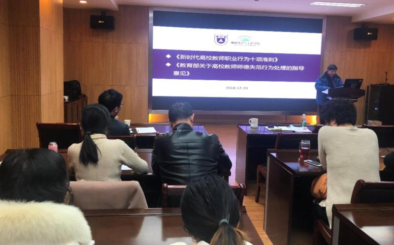 2018年12日20日下午,地科院召开学院师德师风教育警示大会。会议由学院党委书记王唯主持。