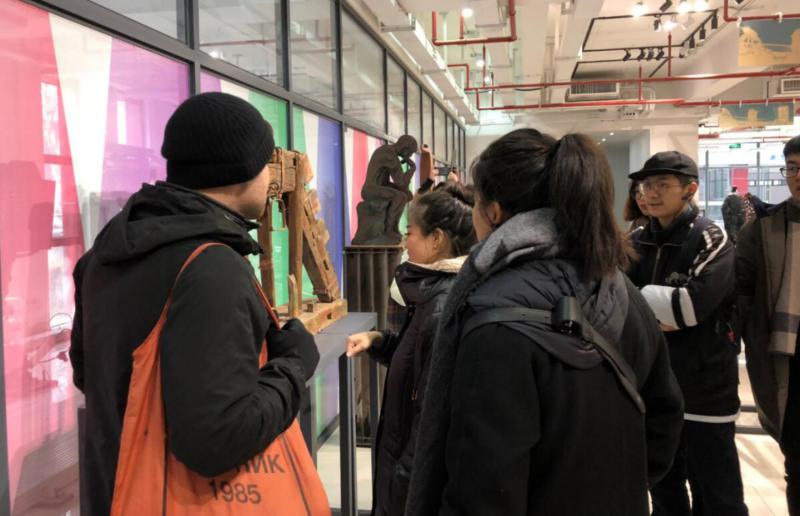 随后,来访师生参观了文创平台主办的“逐梦时代·塑我青春——全国青年雕塑家作品展”。此次展览由凯发k8官网双创示范基地文创平台美术产研中心、凯发k8官网雕塑艺术研究所承办,遴选我校学生创新创业项目的部分优秀成果,展示了传统的艺术雕塑与现代文化的结合。凯发k8官网双创示范基地文创平台美术产研中心负责人尚荣介绍了展厅概况,中美学子就不同文化背景下传统文化的艺术呈现方式进行交流讨论。
