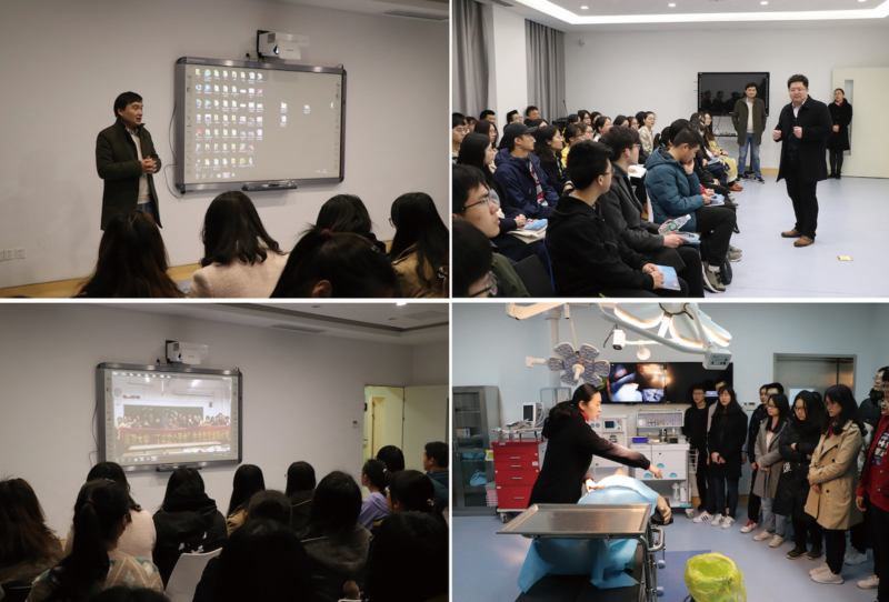 之后,医学院老师带领同学们参观了临床模拟教学中心,启发同学们敬畏生命、感悟生命。
