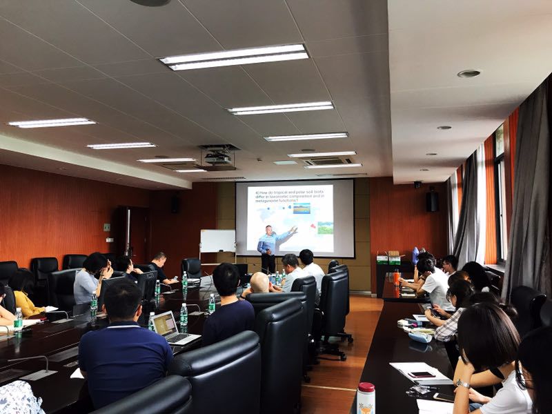 Jonathan Adams教授介绍了他在全球植被、土壤微生物和土壤环境等方面的研究工作,特别是最近5年他及其合作者在土壤微生物分布、功能、基因测序和农作物产量的研究成果以及入职凯发的工作计划,表达了与学校各相关专业进行合作的意愿。参会师生与Adams教授进行了深入的交流,现场气氛热烈。