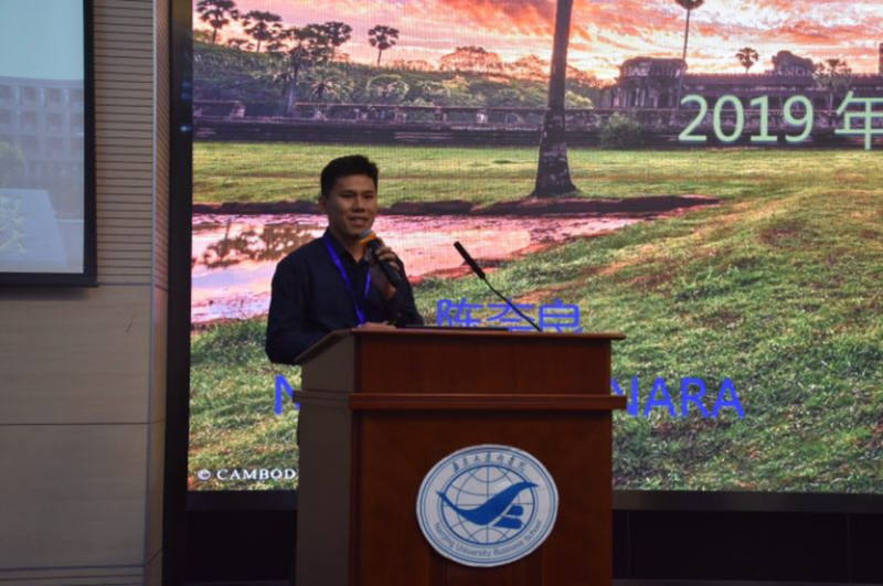 澜沧江湄公河五国青年代表就自己国家的地理历史、语言文化、民族宗教、特色美食等与大家进行了分享。来自柬埔寨的青年代表陈奈良同学用一段纪录片展示了柬埔寨的宜人景色,热情欢迎大家去柬埔寨旅游。老挝青年代表阿努萨是广西民族大学的一名留学生,他用流利的中文介绍了“一带一路”政策给老挝带来的各种变化,也欢迎大家乘坐即将开通的中老铁路前往老挝观光。缅甸代表向大家介绍了缅甸的大金塔、翡翠佛等佛教景点,并展示了具有缅甸特色的一些节日与风俗。身着泰国传统服装的泰国代表向大家介绍了泰国的传统建筑和美食。越南代表着重介绍了越南的政治体制,尤其是越南共青团的情况。